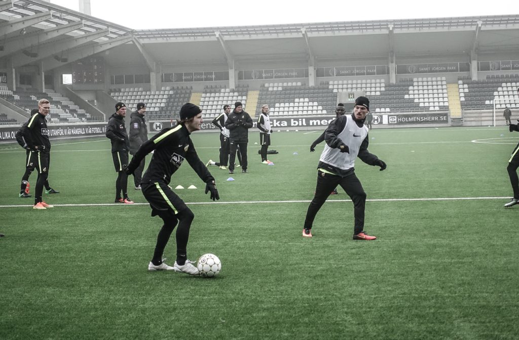 Idag bestämde jag mig för att åka till Bravida Arena för att se BK Häckens A-lag träna. Laget har nyligen kommer tillbaka från träningslägret i Dubai och jag var sugen på att se laget träna.